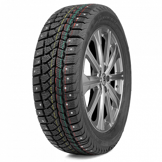 - Надёжное сцепление с дорогой при пониженном шумообразовании и долговечность шин достигается ассиметричным рисунком протектора и широким расположением шипов.